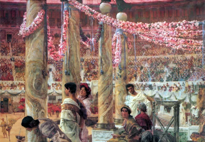 Лоуренс Альма-Тадема (1836 – 1912), мастерски владея тщательно проработанными деталями и сценами того, какой могла быть жизнь тысячелетия назад, показал повседневную жизнь Римской империи, с которой могла соотноситься викторианская Англия.