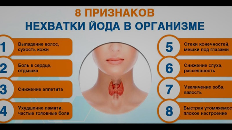Ваша щитовидная железа нуждается в йоде для производства гормонов, которые влияют на обмен веществ и другие жизненно важные функции. Поскольку ваш организм не производит йод, то вы должны ежедневно получать его из пищи. Если в организме недостаточно йода, то он не может вырабатывать достаточное количество гормонов щитовидной железы.