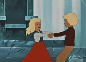 В сказке появляются двое детей — Кай и Герда. Они жили по соседству и были так близки, будто родные брат и сестра. Вместе они проводили всё своё время: играли, смеялись, и особенно им нравилось любоваться розами, которые выращивали их родители.
